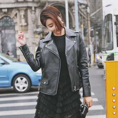 2020 Mùa xuân và mùa thu Da mới Da nữ Áo khoác ngắn Hàn Quốc Áo khoác mỏng xe máy Áo khoác da bê Chao Hained - Quần áo da