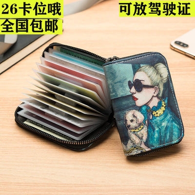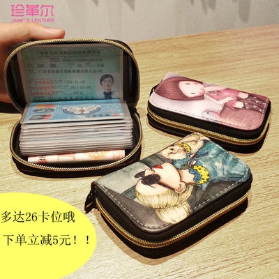 [26 khe cắm thẻ] túi đựng thẻ nữ dây kéo organ nữ sinh viên dễ thương in Hàn Quốc gói thẻ thay đổi - Hộp đựng thẻ