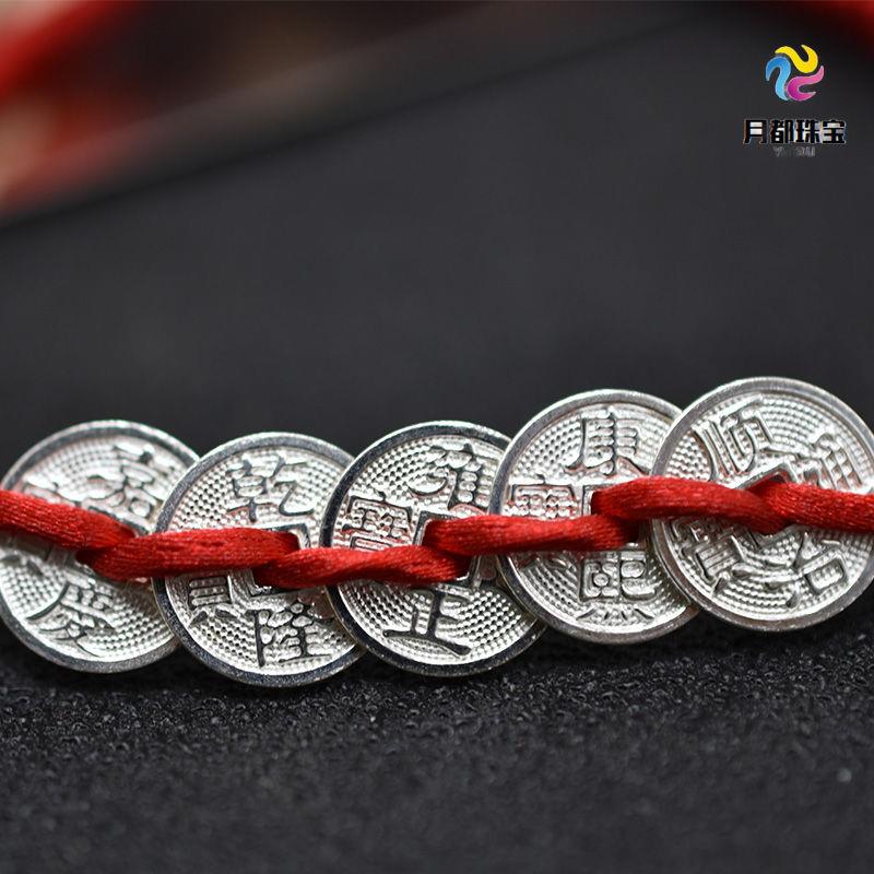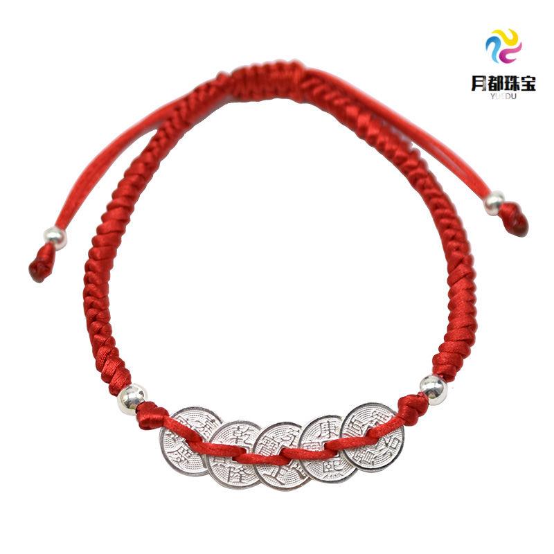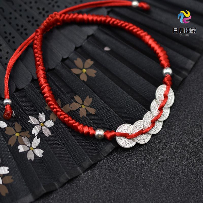999 sterling bạc năm hoàng đế tiền dây đỏ vòng tay phụ nữ cặp tay bện dây thừng đàn ông may mắn bảo vệ tài lộc vòng chân cổ trẻ em - Vòng chân