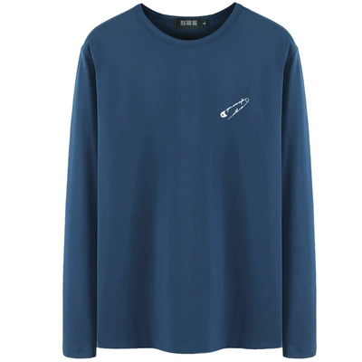 Anh trai mập cộng với size áo thun dài tay nam mùa thu đơn giản từ bi lỏng lẻo cộng với áo béo tăng mỡ - Áo phông dài