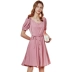 Áo cổ yếm vuông có tay ngắn vuông 2020 nữ tính khí mùa hè mới eo dài màu hồng satin Một chữ - A-Line Váy