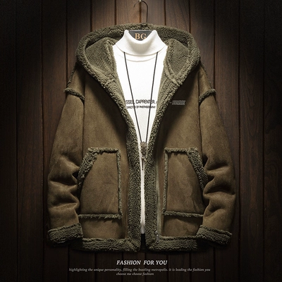 Áo khoác bông có mũ trùm đầu mới dành cho nam giới béo plus size phiên bản Hàn Quốc của xu hướng áo khoác len lông cừu béo ấm áo mùa đông - Bông