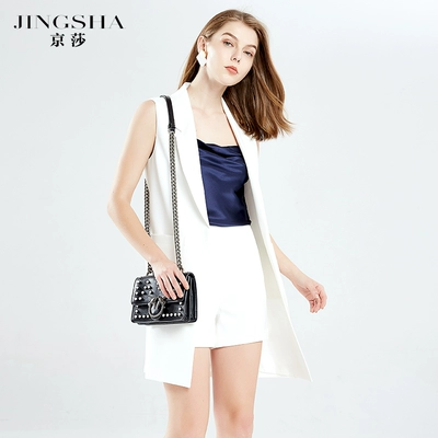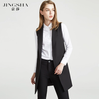 Áo khoác ghi lê của phụ nữ chiều dài giữa năm 2021 mùa xuân và mùa thu mới của phụ nữ áo vest đen mỏng phù hợp với bộ đồ giảm béo áo khoác ghi lê không tay - Áo vest
