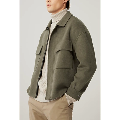 Áo khoác len cashmere hai mặt mùa đông 2019 đơn giản ve áo khoác len nam áo khoác dày - Áo len