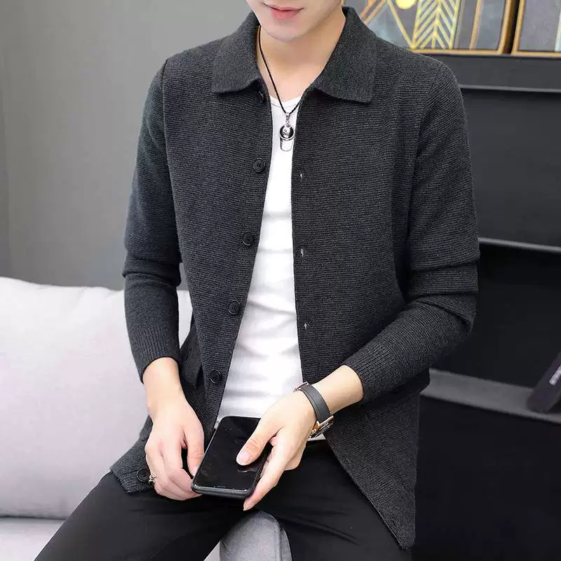 Áo khoác len nam màu đỏ lưới mùa thu đông phiên bản Hàn Quốc mới của xu hướng Nhật Bản áo khoác len nam cardigan thương hiệu thủy triều - Áo len thể thao / dòng may