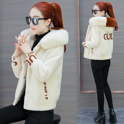 Áo khoác len nữ phong cách ngắn 2020 thời trang mới mùa thu và mùa đông dày lông cổ áo lông chồn len lông cừu tính khí - Áo khoác ngắn