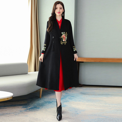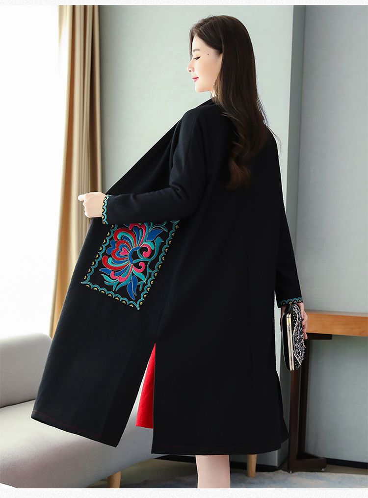 Áo khoác len phong cách dân tộc retro Áo len dài giữa Trung Quốc kiểu dáng áo len mỏng và khí chất mỏng, xu hướng quần áo nữ Trung Quốc - Trung bình và dài Coat