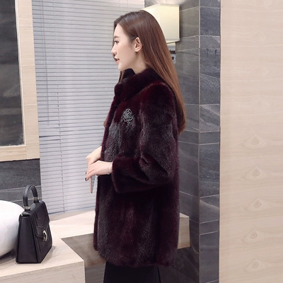 Áo khoác lông chồn toàn bộ lông chồn lông chồn nữ Mao Hained 2019 mới dài giữa cổ cao lông Hàn Quốc - Faux Fur