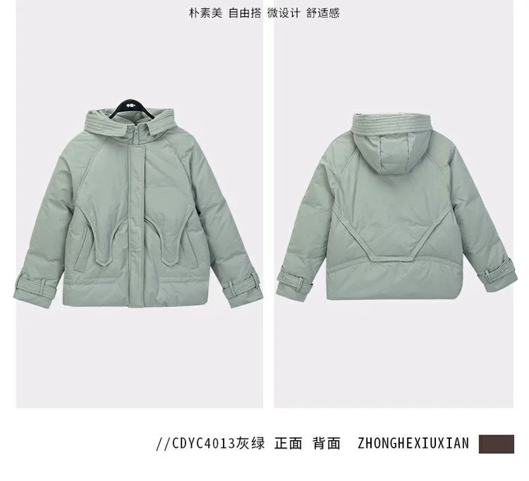 Áo khoác ngắn trùm đầu của Zhonghe giản dị giữ ấm, thoải mái và thả lỏng mùa đông phong cách mới CDYC4013 - Xuống áo khoác