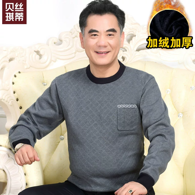 Áo len cộng với áo len dày cho nam trung niên và người cao tuổi áo len cổ tròn nam trung niên áo len dày 2018 mới - Cặp đôi áo len
