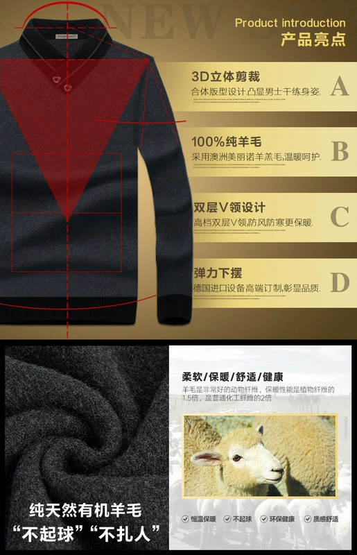 Áo len nam mùa đông dày len cổ chữ V áo len màu tinh khiết áo len trẻ trung và doanh nhân trung niên - Áo len