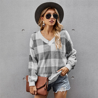 Áo len nữ kẻ sọc sang trọng mùa thu cổ chữ V - Áo len thể thao / dòng may