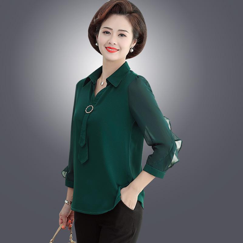 Áo mẹ mặc kiểu tây dài tay top trung niên dành cho nữ trung niên mùa hè áo sơ mi nữ mùa xuân voan nhỏ - Phụ nữ cao cấp