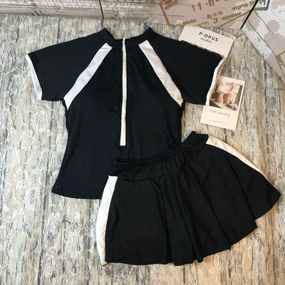 Áo tắm xẻ tà thể thao bán chạy, kiểu dáng nữ tính, mỏng, bụng, bảo thủ, váy nửa tay, quần đùi, du lịch suối nước nóng nhỏ tươi mát - Bộ đồ bơi hai mảnh
