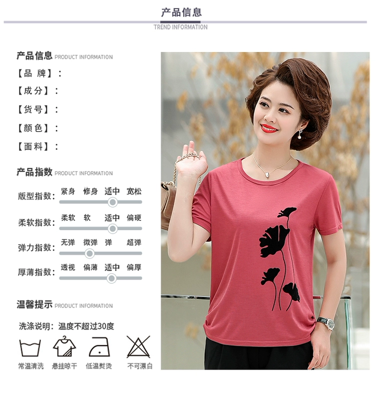 Áo thun ngắn tay cho phụ nữ trung niên và cao tuổi, bà mẹ trung niên mặc đồ rộng cộng với chất béo cộng với size quần áo kiểu Tây - Quần áo của mẹ
