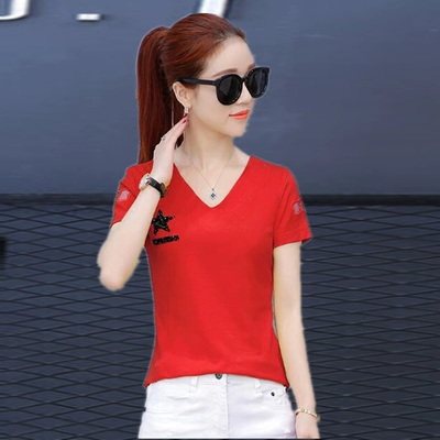Áo thun ngắn tay mùa hè cho nữ ngắn tay mùa xuân và mùa thu 2020 Áo sơ mi sọc cổ chữ V mới của phụ nữ - Cộng với kích thước quần áo
