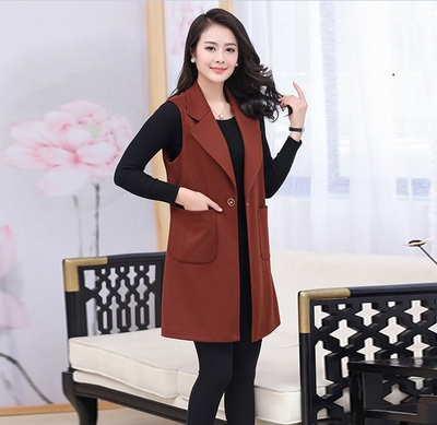 Áo vest mùa xuân và mùa thu của phụ nữ trung niên và phụ nữ trong phần dài của áo mẹ cỡ lớn thời trang áo khoác phụ nữ trung niên trên áo ghi lê. - Áo vest