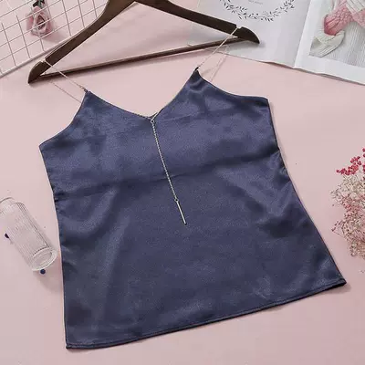 Áo yếm nữ mặc bên ngoài gợi cảm cổ chữ V chuỗi sa tanh mỏng thắt lưng bên trong áo khoác cơ sở cỡ lớn chất béo MM giả lụa - Áo ba lỗ