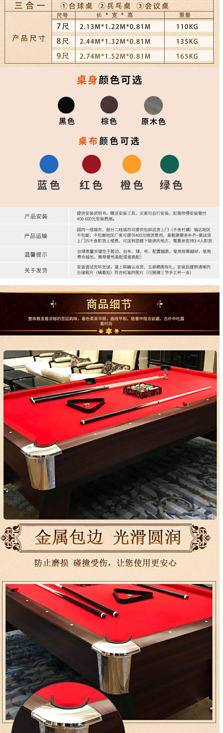 Bàn bida tiêu chuẩn đa chức năng hộ gia đình Mỹ màu đen tám ba trong một bàn bida thương mại trong nhà - Bi-a