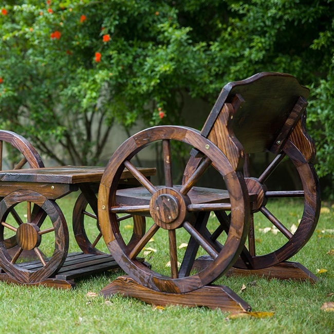 Bàn ghế quầy bar Bàn ghế giải trí Bàn ghế ngoài trời Bàn ghế bánh xe đơn Bàn ghế gỗ căm xe - Bàn ghế ngoài trời / sân