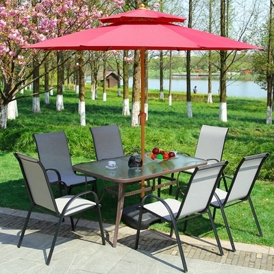 Bàn ghế sắt rèn sân vườn bàn ghế quán trà ngoài trời ban công ngoài trời ô dù giải trí kết hợp quán cà phê bàn ​​ghế nhỏ - Bàn ghế ngoài trời / sân
