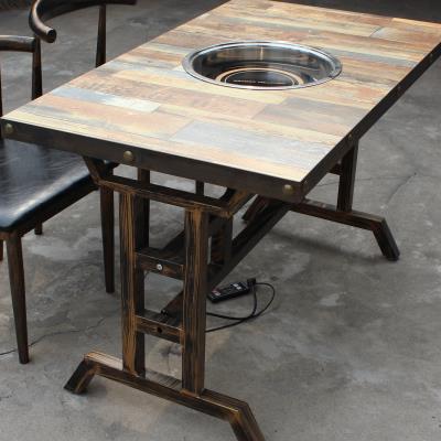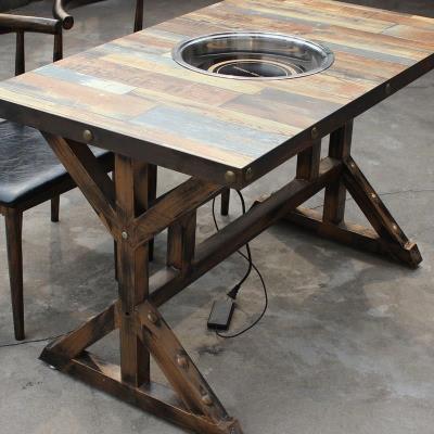 Bàn vuông đặt bàn ăn lẩu bàn sử dụng kép tự phục vụ mở lỗ bàn ghế nướng thịt nướng lẩu làm cũ phù hợp - FnB Furniture