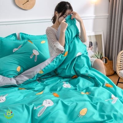 Bộ chăn bông ký túc xá một mảnh bông cô gái trái tim bốn mảnh bông nhỏ phòng ngủ tươi mát khăn trải giường thân thiện với da học sinh dễ thương - Quilt Covers