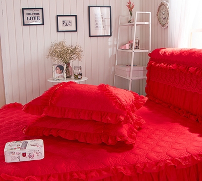 Bộ đồ giường đám cưới một mảnh ở nhà váy ngủ màu đỏ khách sạn bốn mảnh lễ hội nệm dày trải giường váy bông - Váy Petti