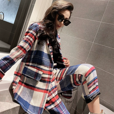 Bộ đồ kẻ sọc, quần âu, bộ đồ hai mảnh, thời trang, hoang dã, mỏng, phong cách phương Tây, bộ đồ cá tính, tính khí, áo khoác, quần tây, quần áo phụ nữ - Bộ đồ