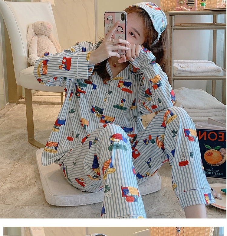 Bộ đồ ngủ cotton tinh khiết của phụ nữ mùa xuân và mùa thu dài tay phù hợp với phụ nữ Hàn Quốc mẹ của phụ nữ dễ thương áo nịt dễ thương dịch vụ nhà lỏng cộng với kích thước mùa đông - Nam giới