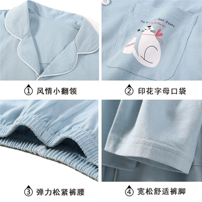 Bộ đồ ngủ mèo nữ bộ đồ ngủ dài tay cotton tinh khiết ngọt ngào có thể mặc bên ngoài dịch vụ mặc nhà mùa hè hai mảnh phù hợp với mùa xuân và mùa thu mỏng - Bên ngoài ăn mặc