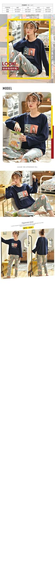 Bộ đồ ngủ mùa thu nữ cotton dài tay học sinh trung học phong cách Hàn Quốc dễ thương lỏng lẻo mùa thu ở nhà dịch vụ hai mảnh phù hợp với mùa xuân và mùa thu - Pyjama
