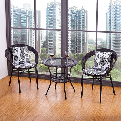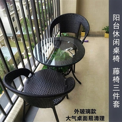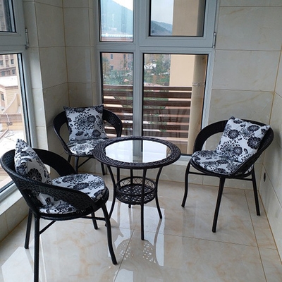 Bộ ghế tam sự và bộ ghế mây tứ linh. Bàn trà mây ban công kính thời trang ghế nội thất chống gỉ - Bàn ghế ngoài trời / sân