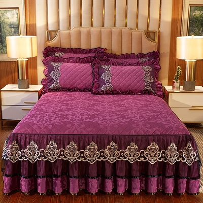 Bộ khăn trải giường bằng nhung chần bông dày khăn trải giường đơn mảnh phong cách cung điện châu Âu ren thêu ren có thể kết hợp với bốn bộ - Váy Petti