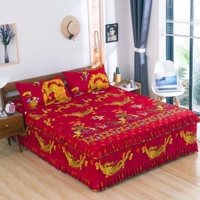 Bộ khăn trải giường bằng vải cotton kiểu váy trải giường mảnh trải giường chống trượt Bộ khăn trải giường bằng vải cotton tinh khiết ba mảnh bốn mảnh 1,5m 1,8m1,2 - Váy Petti