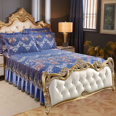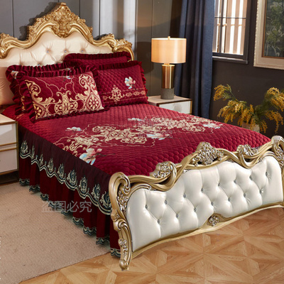Bốn mảnh ga trải giường một mảnh trải giường mùa đông dày ấm áp pha lê nhung phong cách châu Âu váy ngủ không đuôi chần bông - Váy Petti