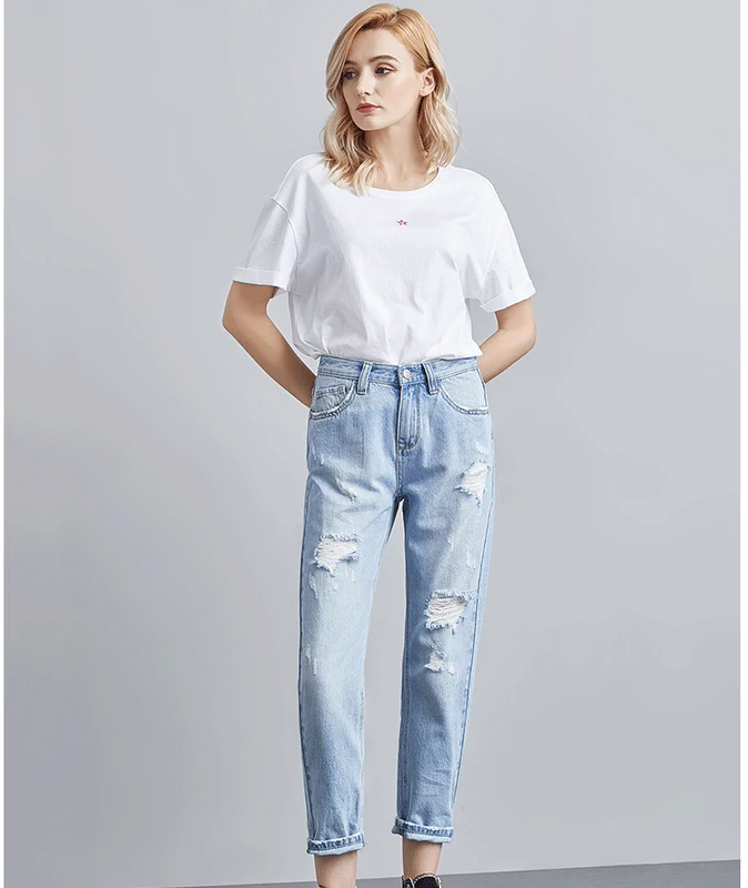 BS2B / Little Devil Fish Ripped Jeans Nữ Củ cải Chín Quần Mới Đường rách rách Quần Quần Nữ Thủy triều - Quần jean
