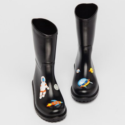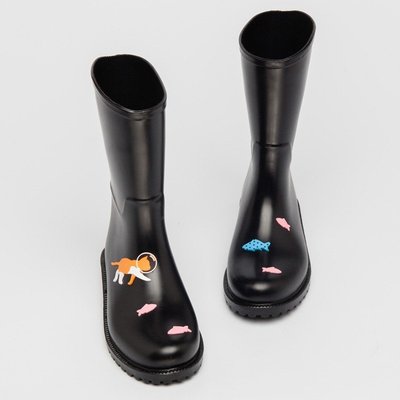 Cá tính cắt dán giày đi mưa giày pony ủng tất cả các trận đấu nhẹ chống trượt nước ủng cao su ủng đi mưa nữ giày cao su ống giữa - Rainshoes