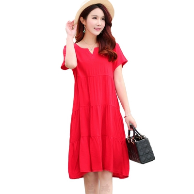 Các bà mẹ mùa hè mặc váy liền màu rayon cộng với béo cộng với size váy dài trung niên và phụ nữ cao tuổi váy lụa tơ tằm mới - Cộng với kích thước quần áo