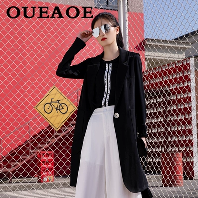 Châu Âu E quầy đích thực mùa xuân 2021 phụ nữ tất cả các trận đấu phù hợp với màu đen cổ áo vest dài thời trang áo khoác phong cách nước ngoài - Áo vest