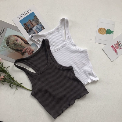 Châu Âu và Mỹ retro nhiều màu vai hẹp cổ chữ U mặc bên ngoài ngắn giảm béo áo yếm áo yếm không tay ren phụ nữ hàng đầu - Áo ba lỗ