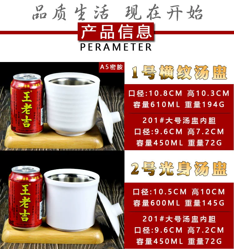 Chén súp melamine màu trắng giả sứ bộ đồ ăn thật kung fu hấp trứng hầm cốc hầm súp bát có nắp lót bên trong bằng thép không gỉ - Đồ ăn tối