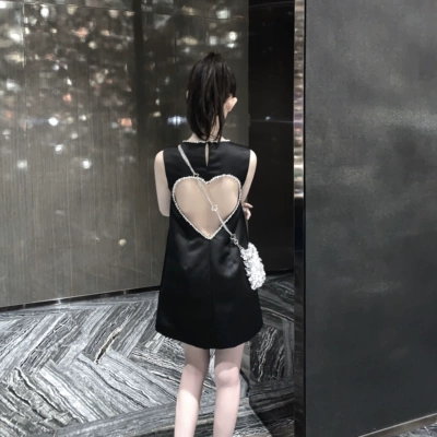 CHICYOU [Back View Kill] Love Diamond Backless Black Pink Girl Heart Sweet Dress - Sản phẩm HOT