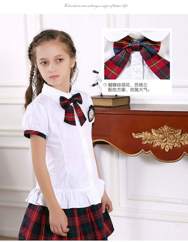 Cô gái áo sơ mi trắng tay ngắn mùa hè phong cách mới Hàn Quốc trẻ em trẻ em xù lông nữ trung và lớn áo sơ mi trắng trẻ em mùa hè - Áo sơ mi