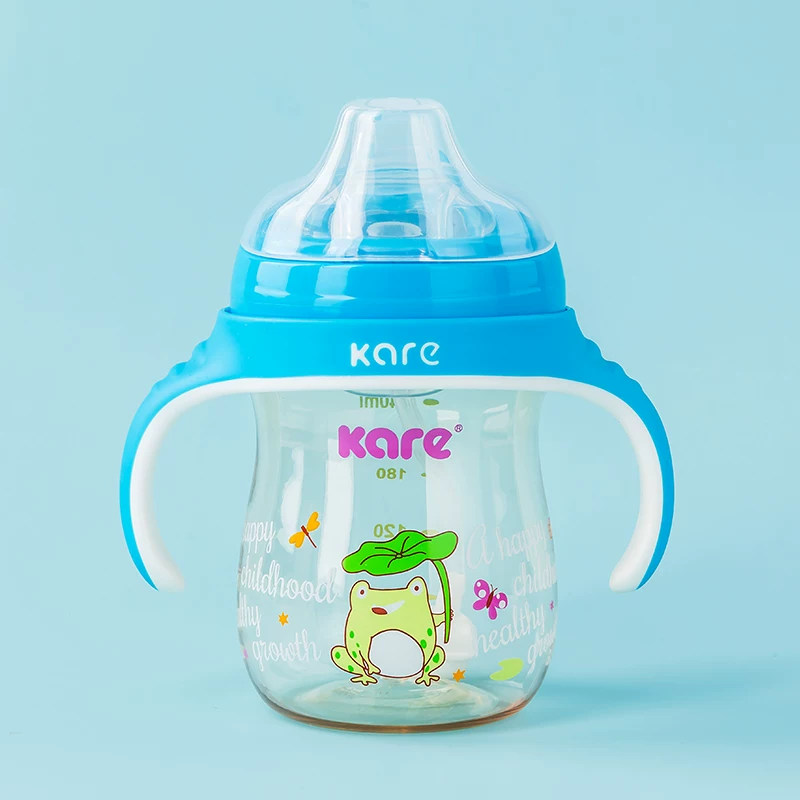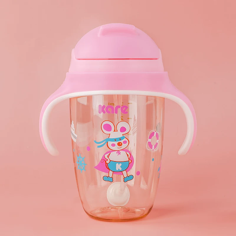 Cốc đựng nước ống hút Kare Keer PPSU chống vòi, bé tập uống, cốc mỏ vịt, chống đau bụng chống rơi có tay cầm - Cup / Table ware / mài / Phụ kiện