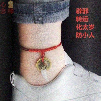 Con chó răng vòng chân đồng xu chuông vòng chân năm sinh năm sinh sợi dây màu đỏ nam và nữ vòng chân - Vòng chân