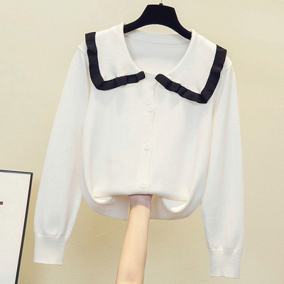 Cộng với kích thước của phụ nữ mùa thu ngọt ngào búp bê cổ áo len mỏng dệt kim 200 pound chị béo mm áo len phong cách nước ngoài - Áo len thể thao / dòng may
