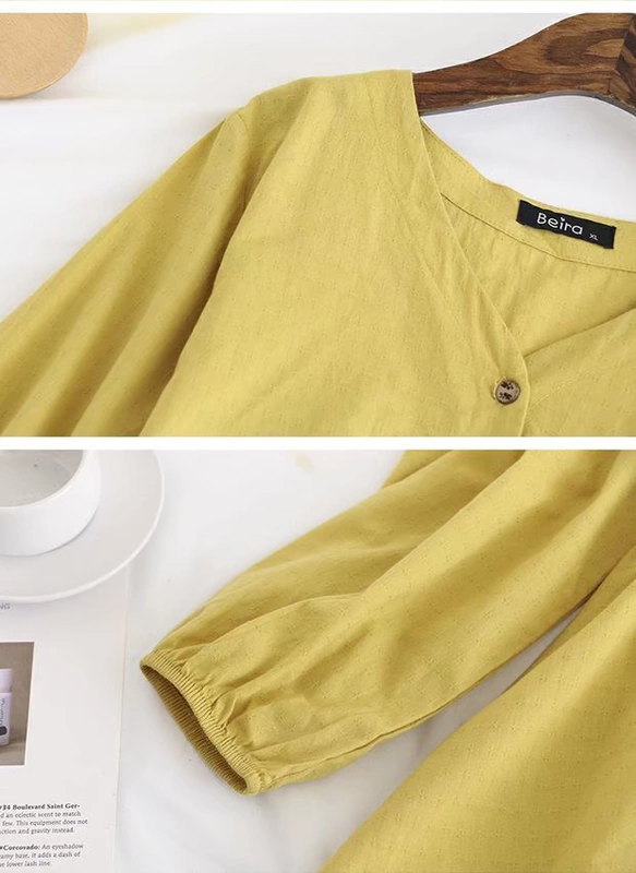 Cộng với size áo hở lưng cho bé sơ mi lửng, em gái mập đã mỏng 200 kg áo thun cổ chữ V mùa thu - Áo sơ mi