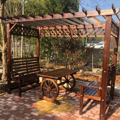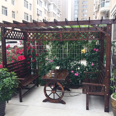 Cung cấp đặc biệt vườn nho ngoài trời gian hàng sân trong khung thực chống ăn mòn nhà sản xuất đồ nội thất bằng gỗ hoa đứng leo bàn ghế mây nhà gỗ - Bàn ghế ngoài trời / sân