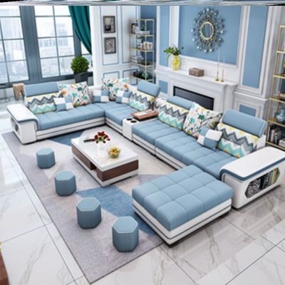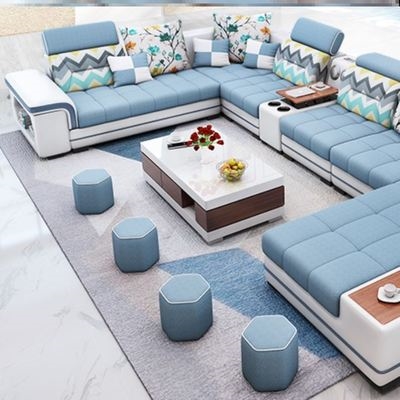 Đặt nhà mới kiểu bắc âu hiện đại kết hợp sofa vải đơn giản công nghệ vải da căn hộ chung cư lớn nội thất toàn nhà phòng khách lớn - Ghế sô pha